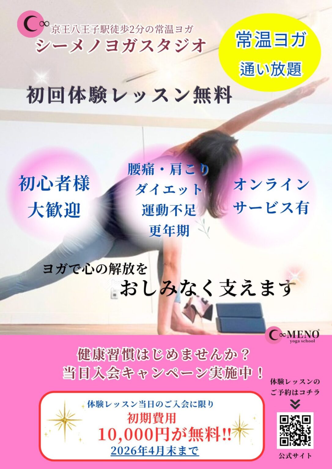 シーメノは世代、性別問わずどなたでも気軽にヨガを楽しめる常温ヨガスタジオです。